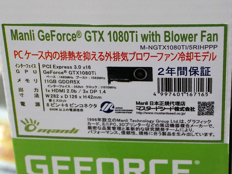 • 過去最安、実売88,800円のGeForce GTX 1080カードがManliから
