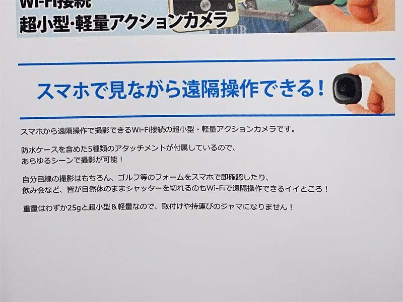 通信距離は100m、スマホで操作できる超小型アクションカメラが上海問屋から