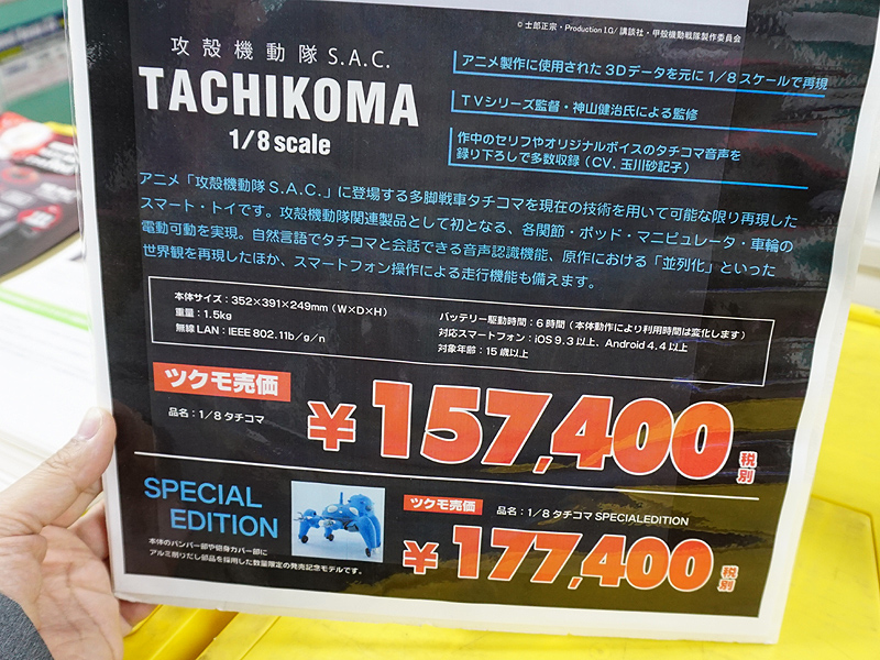 スマホで操作できる「1/8 タチコマ」の店頭予約がスタート、Cerevo製