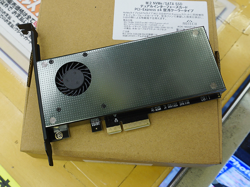 M.2 SSD用のPCIe変換カードに安値品、しかも2スロット仕様