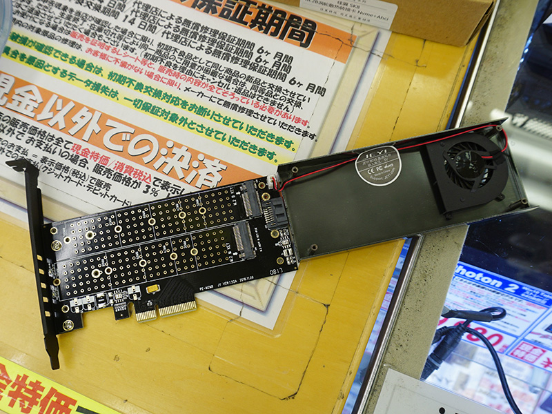 M.2 SSD用のPCIe変換カードに安値品、しかも2スロット仕様