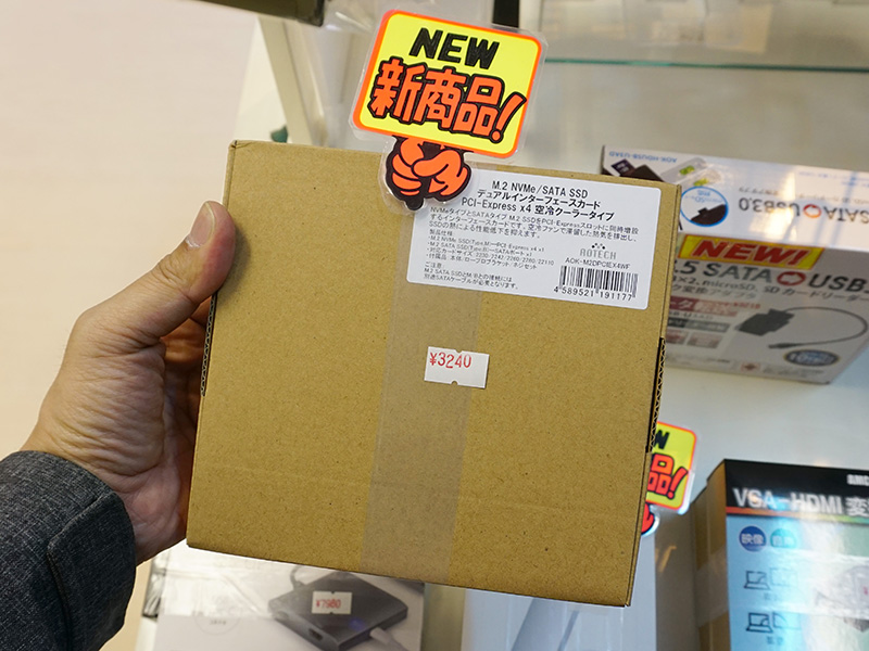 M.2 SSD用のPCIe変換カードに安値品、しかも2スロット仕様