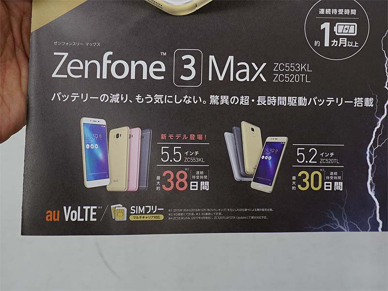 • 連続待受30日間、大容量バッテリー搭載スマホ「ZenFone 3 Max」がデビュー
