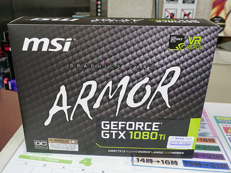 MSI独自クーラー採用「GeForce GTX 1080 TI ARMOR 11G OC」が発売