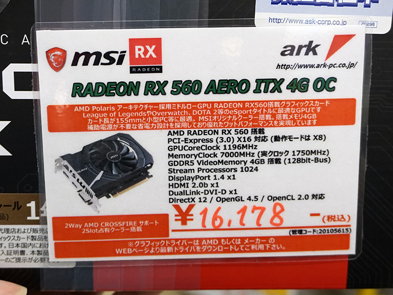 補助電源無しのRadeon RX 560が玄人志向から、デュアルファン搭載