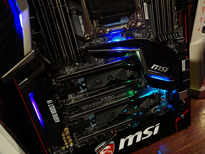 新型「X299」マザーはM.2 SSDの冷却を強化、美しく光るGTX 1080 Tiも展示