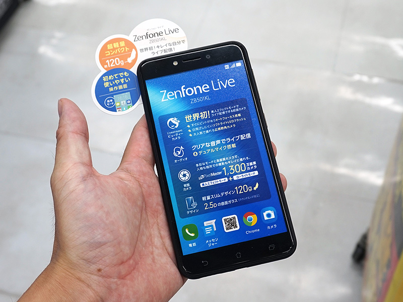 片手にすっぽりと収まるSIMフリースマホ「ZenFone Live」がデビュー