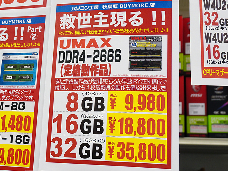 DDR4-2666ネイティブのメモリがセンチュリーマイクロとUMAXから登場