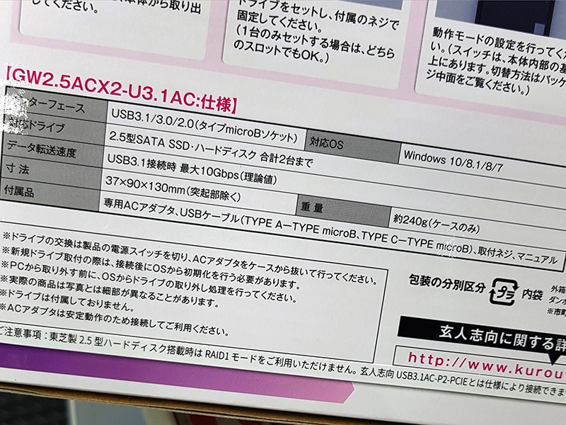 2.5型SSDでRAID構築できる外付けケースが玄人志向から、USB 3.1 Gen2対応