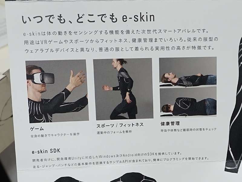 身体の動きをセンシングするスマートアパレル「e-skin」の受注販売がスタート