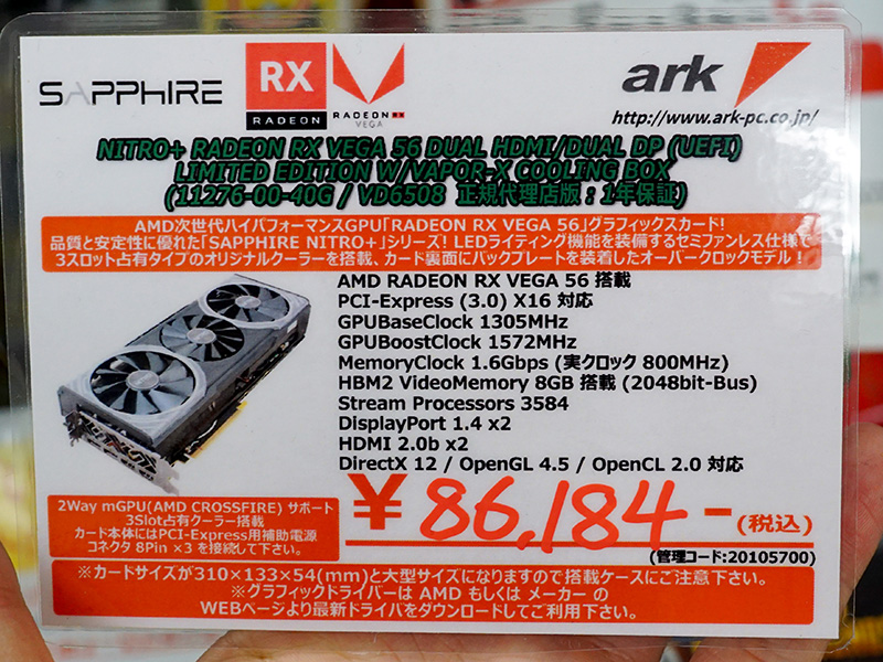 AMDの「Radeon RX Vega 56」が各社から発売、実売63,000円から