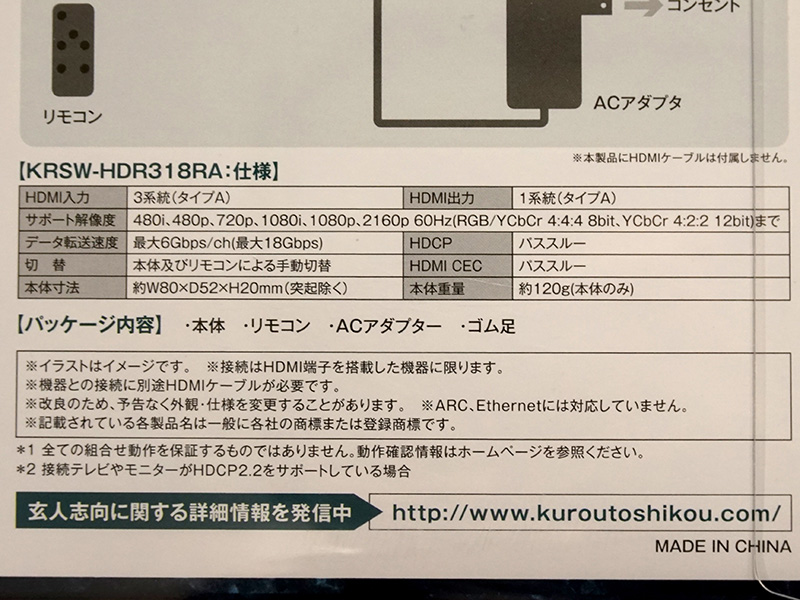 4K60p/HDR対応のHDMIセレクターが玄人志向から、実売5千円以下