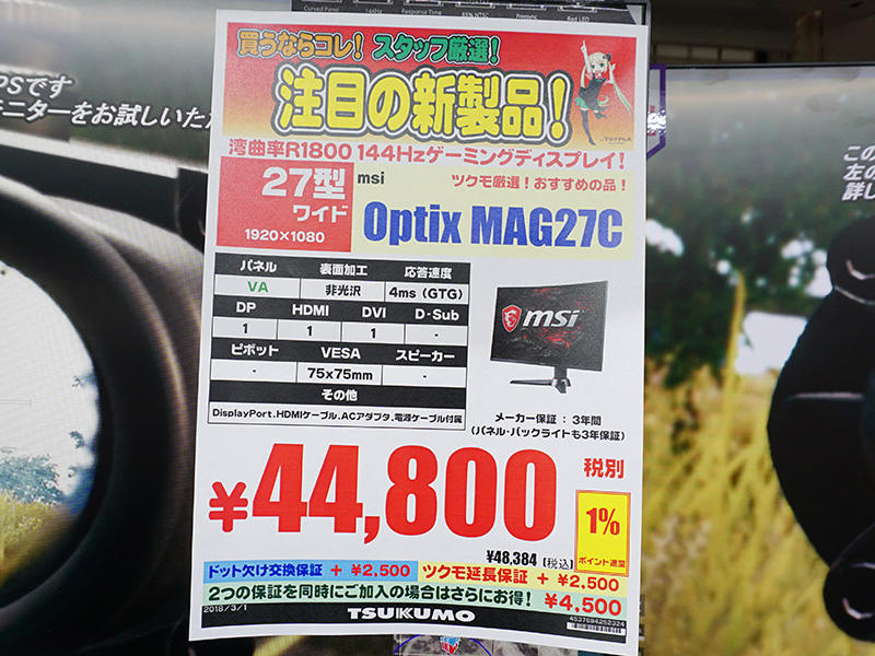 144Hz対応の27型湾曲ゲーミング液晶「Optix MAG27C」が発売、MSI製