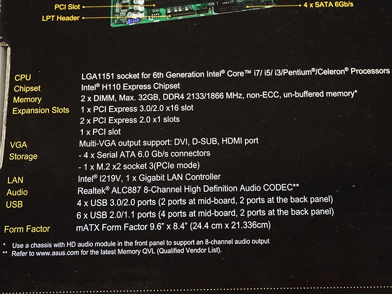6,480円のASUS製マザー「PRIME H110M-P」が発売、Kaby Lake向け