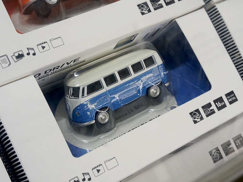 実車を再現したミニカー型の無線マウスやUSBメモリ、ツクモで大量展示中