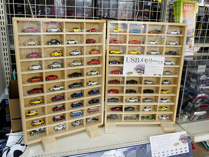 実車を再現したミニカー型の無線マウスやUSBメモリ、ツクモで大量展示中