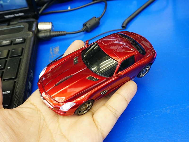 実車を再現したミニカー型の無線マウスやUSBメモリ、ツクモで大量展示中