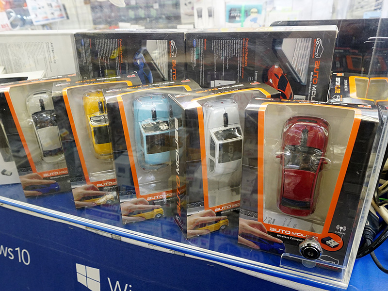 実車を再現したミニカー型の無線マウスやUSBメモリ、ツクモで大量展示中