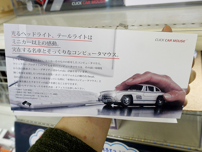 実車を再現したミニカー型の無線マウスやUSBメモリ、ツクモで大量展示中