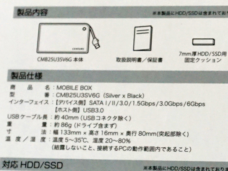 センチュリー MOBILE BOX USB3.0接続 SATA6G 2.5"HDD/SSDケース(CMB25U3BK6G/RD6G/BL6G)