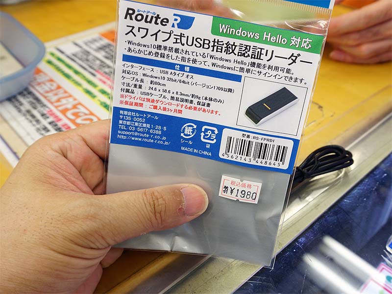実売2,999円のWindows Hello用指紋認証リーダーが上海問屋から