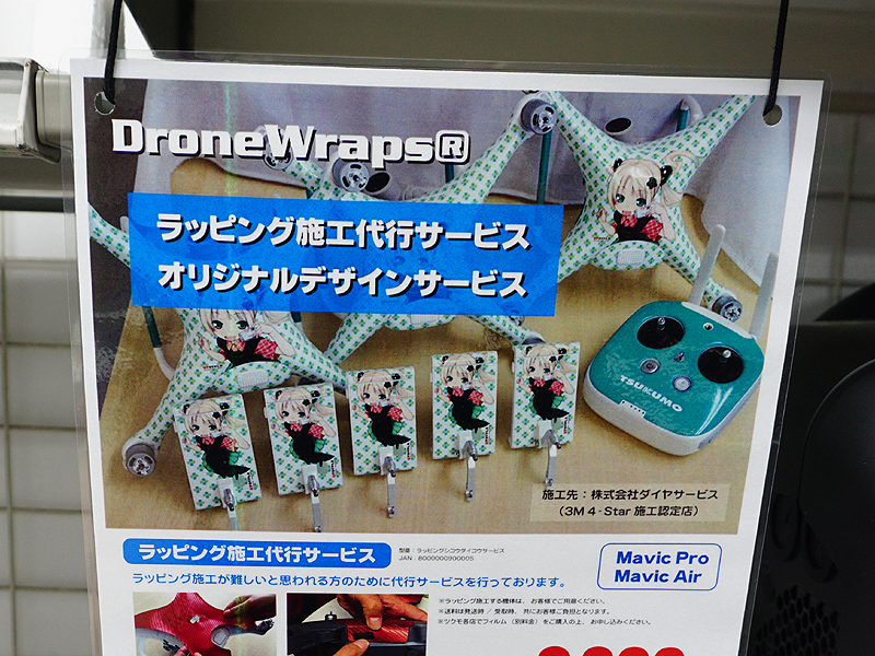 つくもたんデザインのドローンが展示中、DroneWrapのラッピングサービス