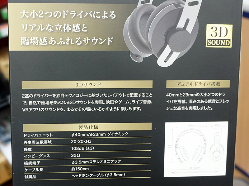 デュアルドライバ仕様の3Dヘッドホンが上海問屋から、価格は4,980円