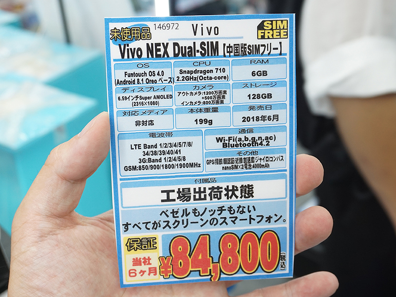 レンズが飛び出る!前面がほぼディスプレイの6.59型スマホ「Vivo NEX A」が直輸入