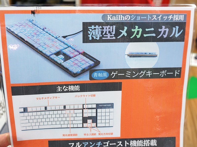 薄型スイッチ採用のメカニカルキーボードが上海問屋から、軽いキータッチ