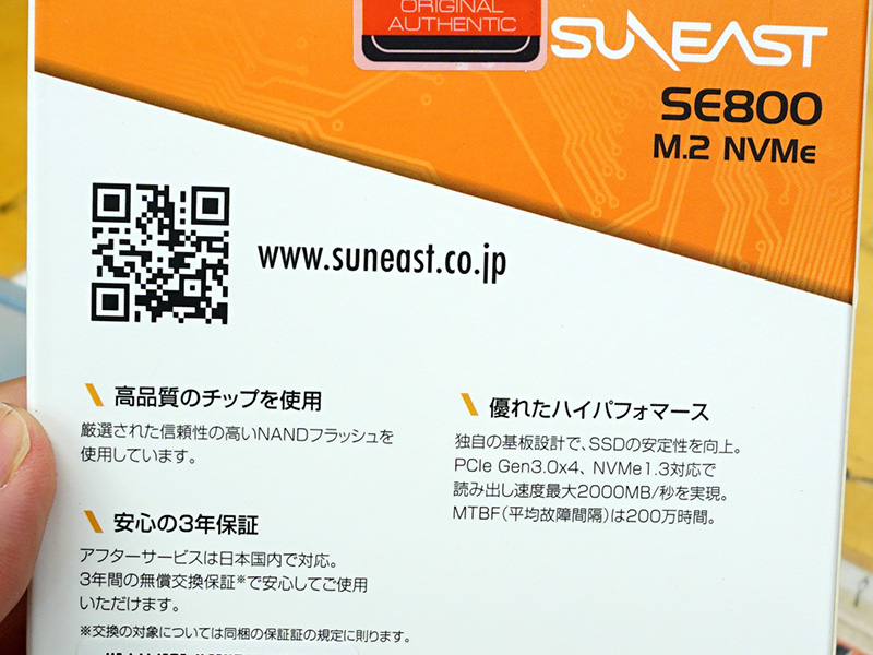 256GBで実売9,980円、安価なNVMe SSD「SE800」がSUNEASTから