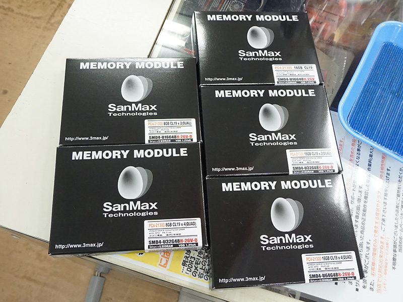G.SKILLの光るDDR4-4000メモリやSanMaxのDDR4-2666メモリが入荷