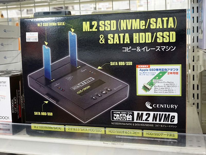 Mac専用SSD - M.2変換アダプタ付きのデータ消去マシンが発売、秋葉館の独自モデル
