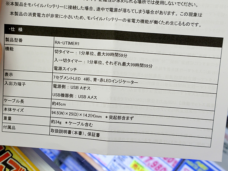 USB機器にタイマー機能を追加できるアダプタが発売、実売1,280円
