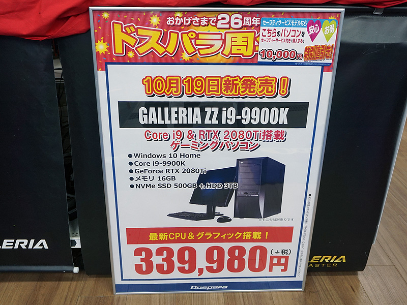 Core i9-9900K搭載PCの在庫販売がドスパラでスタート、早くも売り切れ(4/7)