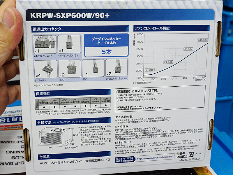 容量600Wのフルモジュラー式SFX電源が玄人志向から、80PLUS GOLD認証品