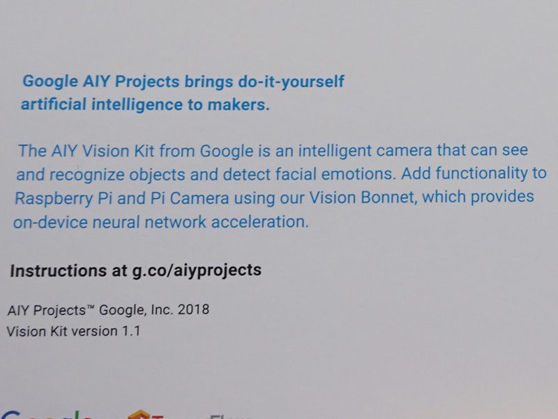 スマートカメラ自作キット「Google AIY Vision Kit V1.1」