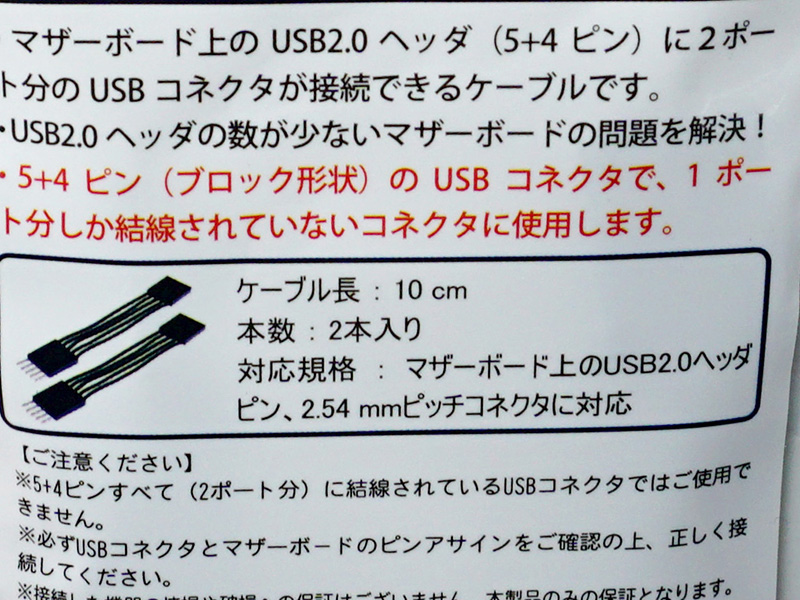 USB 2.0ピンヘッダを有効活用できる節約ケーブルがサイズから