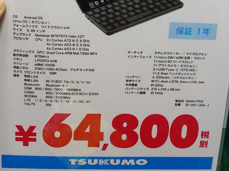 フルキー装備のAndroidスマホ「Gemini PDA」、日本展開も
