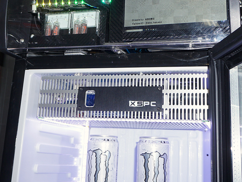 缶ジュースを冷やせる“冷蔵庫PC”が展示中