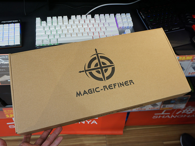 「どこかで見たような英語配列」のメカニカルキーボードが上海問屋から、黒色筐体に緑色のLED