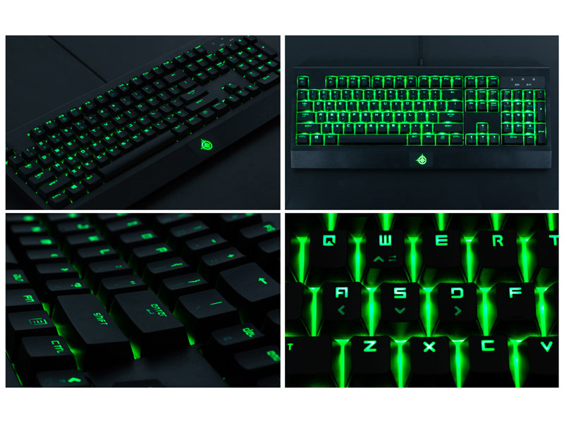 「どこかで見たような英語配列」のメカニカルキーボードが上海問屋から、黒色筐体に緑色のLED