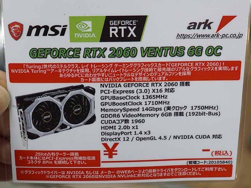 • GeForce RTX 2060がデビュー、価格は42,500円から