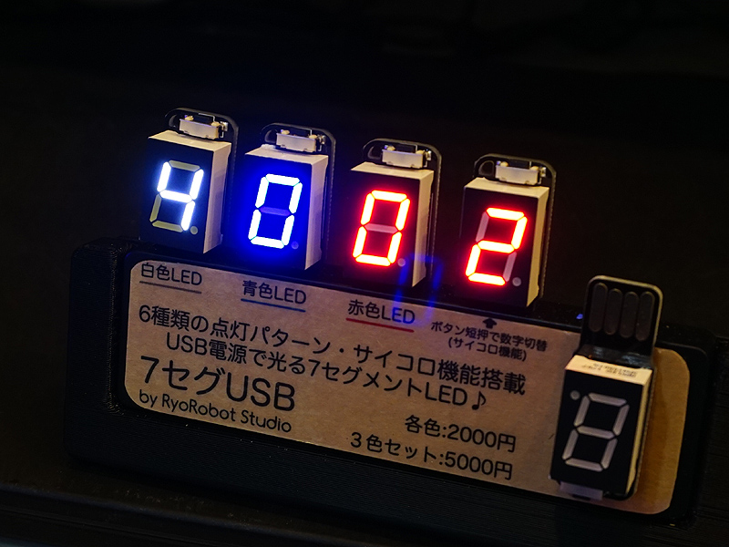 USBメモリ型のLEDデバイス「7セグUSB」が入荷、サイコロ機能もあり
