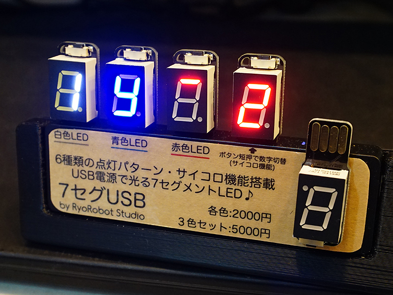 USBメモリ型のLEDデバイス「7セグUSB」が入荷、サイコロ機能もあり