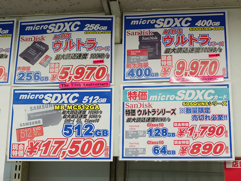 A1対応のSanDisk製128GB microSDXCカードが税込1,980円、リード最大100MB/s