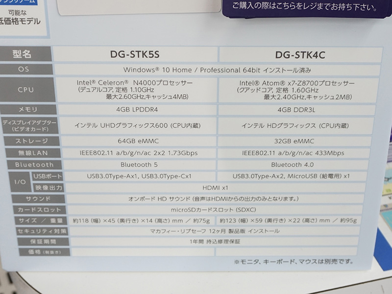 • メモリ4GBのWindows 10スティックPCにCPU強化版、ドスパラ