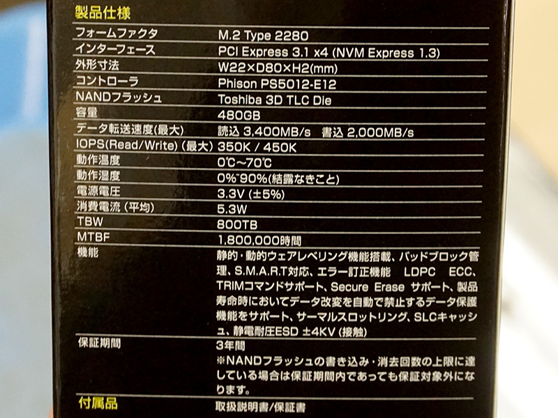リード3,400MB/sの安価なNVMe SSDがグリーンハウスから、480GBは実売9,980円