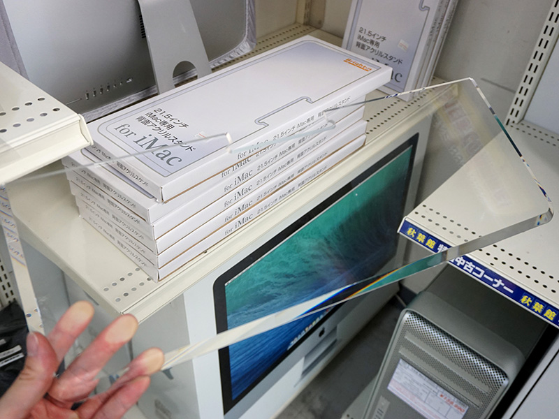 iMacの背面に棚を増設できるアクリル製スタンドが入荷、価格は1,500円
