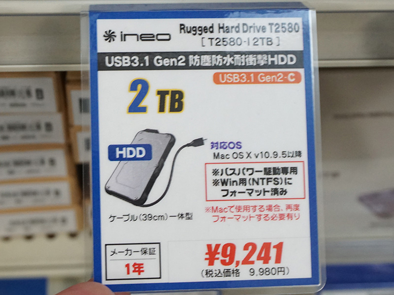 耐衝撃/防塵/防水仕様のポータブルHDDがセンチュリーから、2TBは実売9,980円