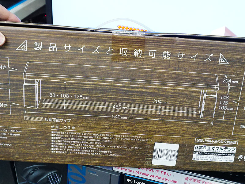 木目調デザインのディスプレイ台がオウルテックから、3段階の高さ調整に対応